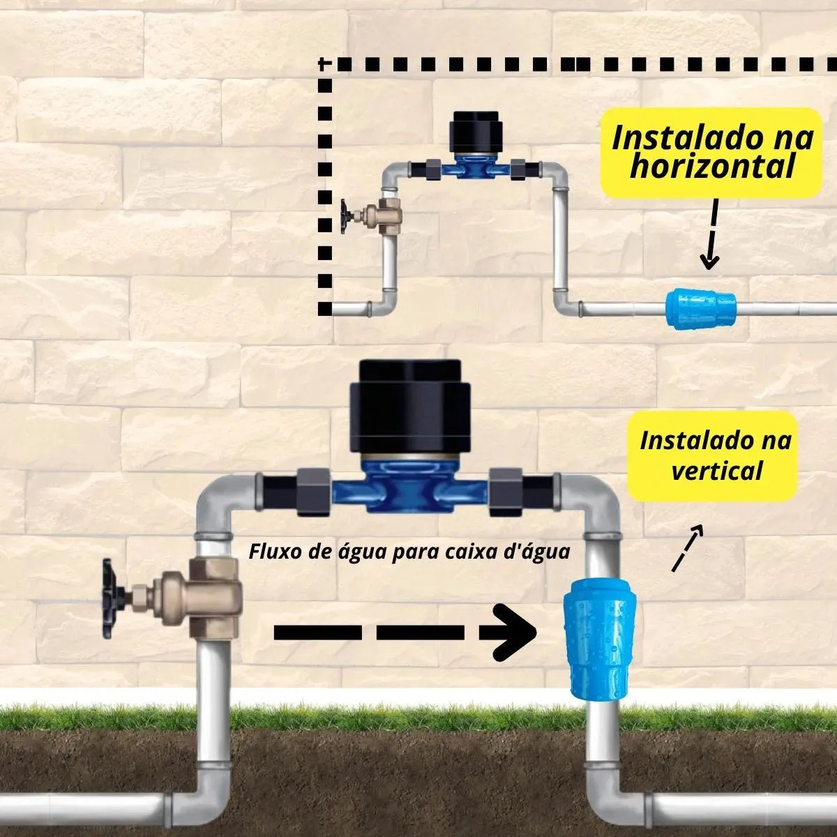 O Block Air foi projetado para ser instalado antes ou depois do hidrômetro, ele impede que o ar presente na tubulação seja contabilizado como consumo, garantindo uma medição justa e ajudando a reduzir o valor da sua conta imediatamente após instalado.